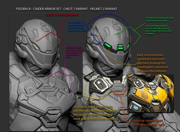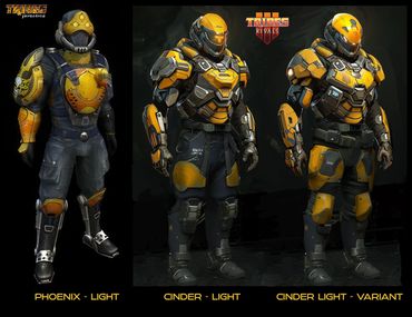 One of my primary focuses has been modular, customizable character assets. For DeadZone / Tribes III we achieved a system that allows for a single contiguous character mesh built on the fly using 5 different character components. A dynamic customizable PBR based material solution allows for total dye customization and rendering of the whole character in a single draw call.